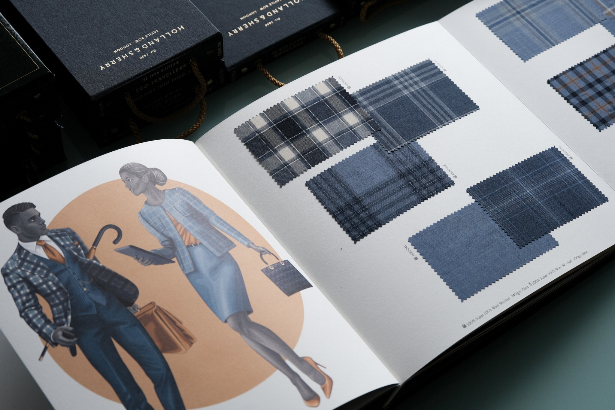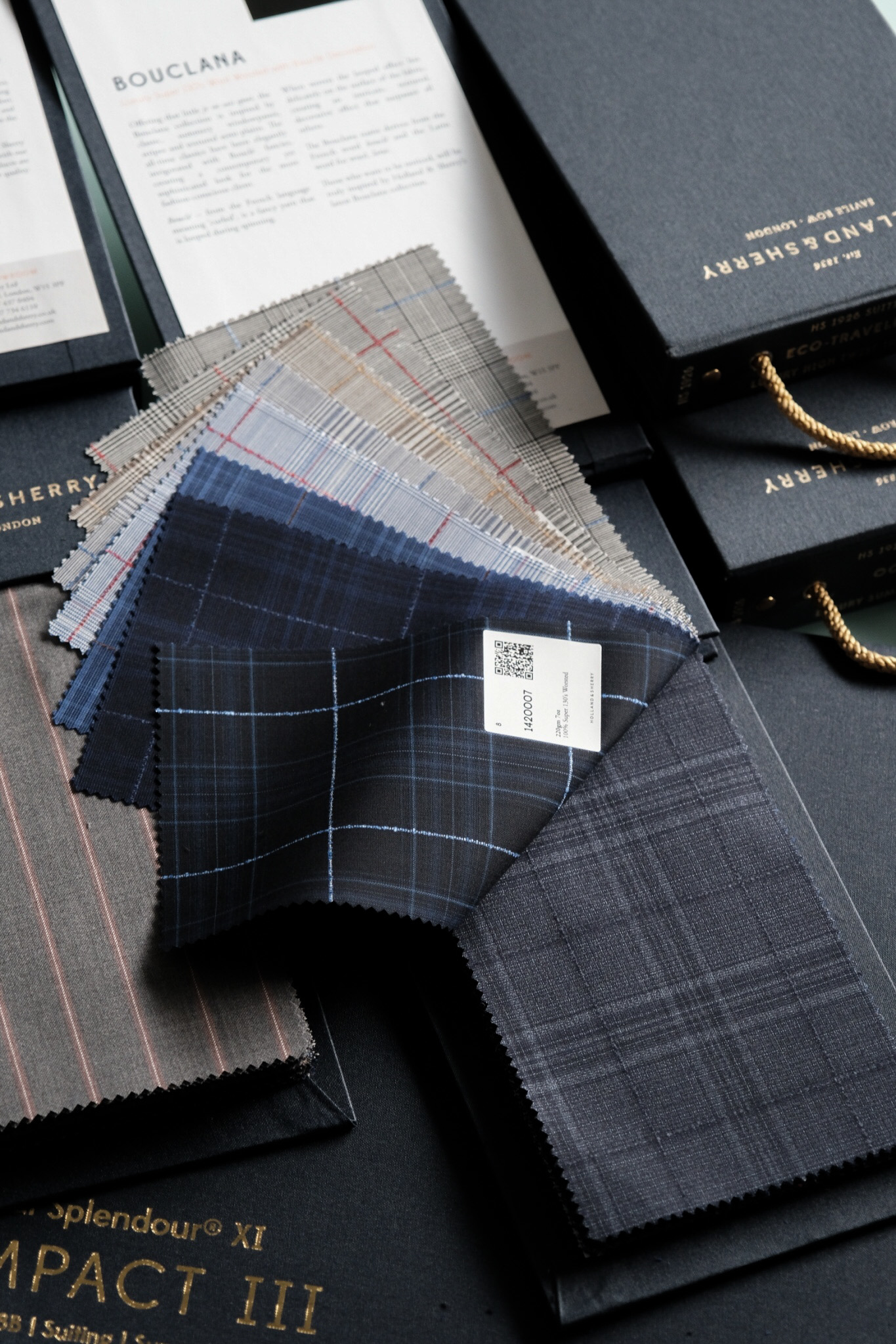 Holland & Sherry立足於高品質的100紗支低紗支方面面料,以梭織技術生產出了世界上第一個百分之百精紡織物全毛100支Snowy River系列,其布料色澤飽滿,紋路清晰,款式難得,手感極佳,耐穿性尤其好。