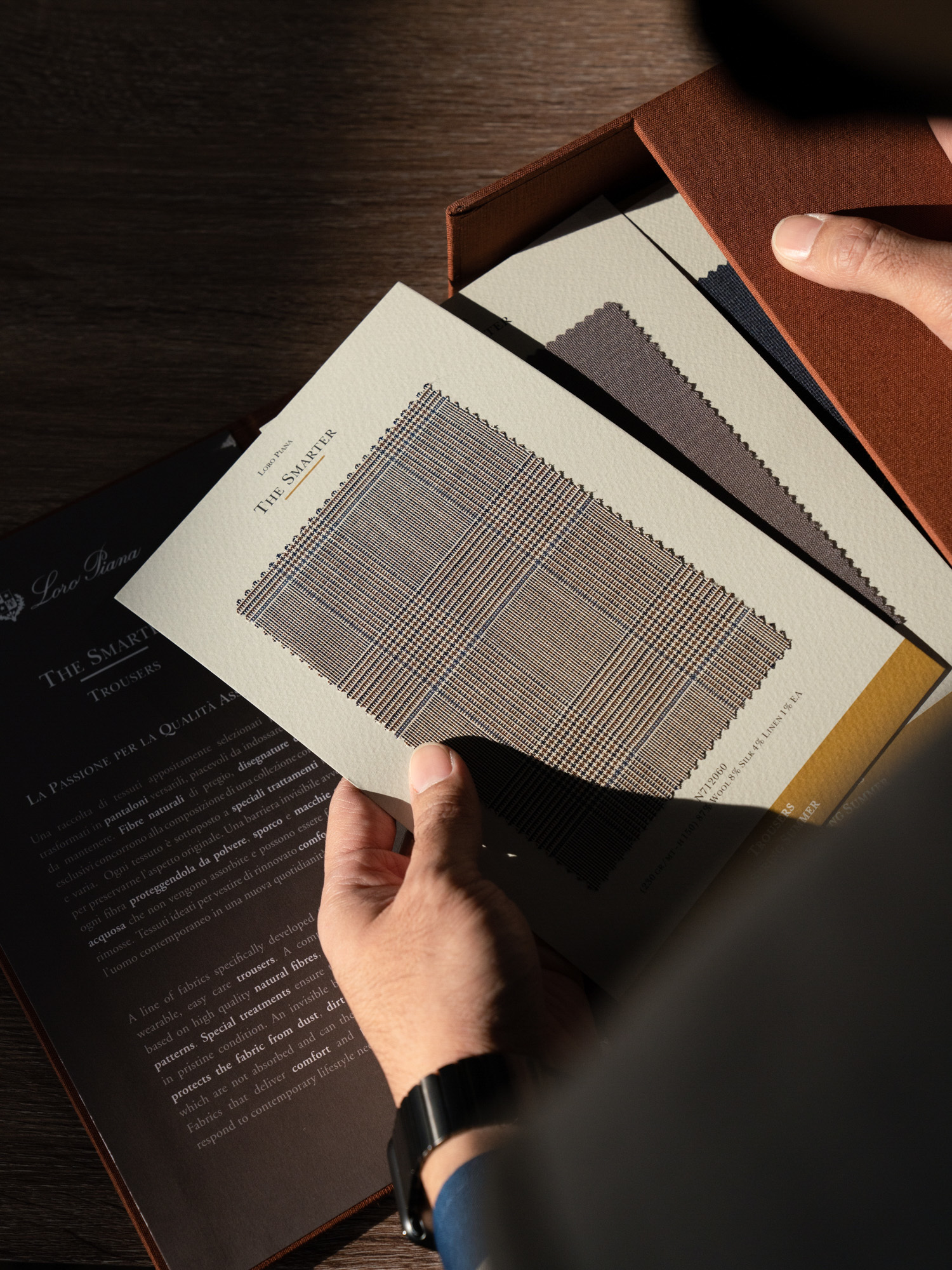 HighPerformance系列面料以及適合商務旅行之Traveller系列精紡面料,羊毛、真絲混紡,羊絨、棉混紡以及新推出之羊毛和竹纖維所製成之面料都讓人耳目一新。